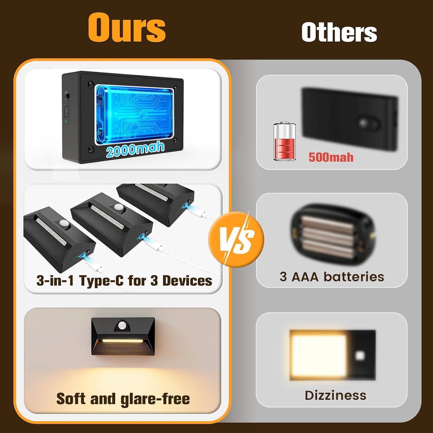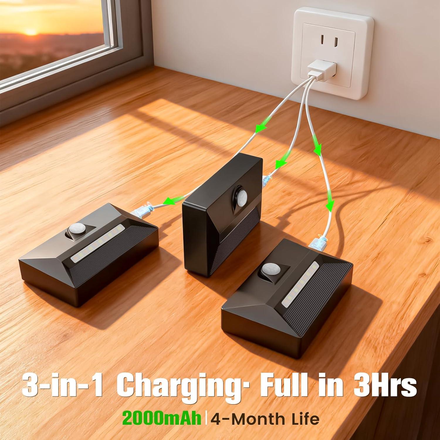 Convenient Charging (1 Cable for 3 Lights): This 4-pack of motion sensor step lights includes one 3-in-1 charging cable, allowing you to charge three motion sensor lights for stairs simultaneously, solving the hassle of charging multiple night lights